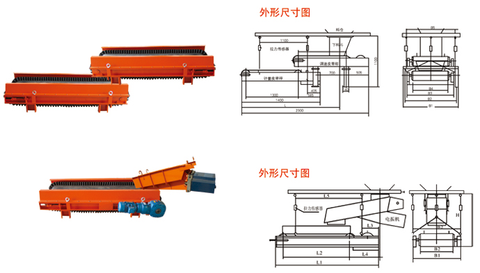 吊掛皮帶秤由三支高精度拉力傳感器垂直吊掛作為計量機構,喂料可采用電振機或給料皮帶秤。